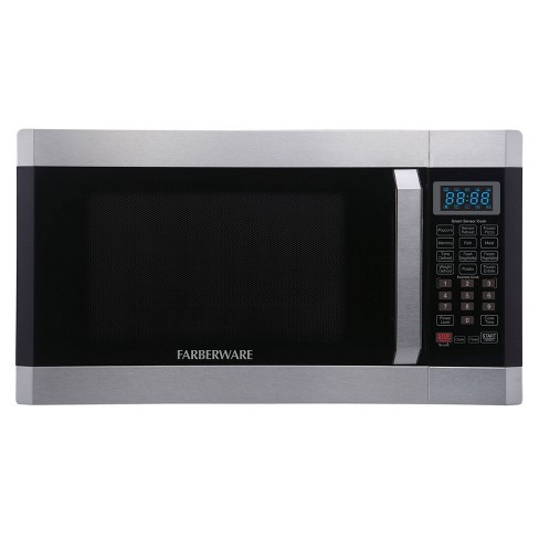 Farberware 1 1 cu ft 1100 watt microwave oven with smart sensor cooking black stainless steel fmo11ahtbsj.
